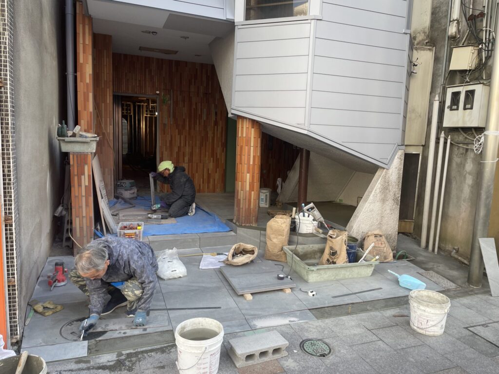 ビルのメインエントランス部分の床のタイル貼り替え工事をさせて頂きました。
