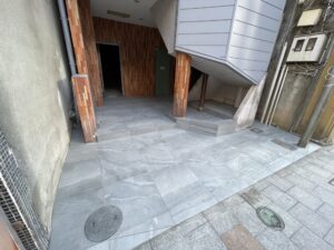 エントランスの床を石目調のタイルに貼り替えるだけでビルのイメージがものすごく変わります。