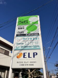 住吉店に引き続き、mirappi様の新店舗の看板を施工させて頂きました。
