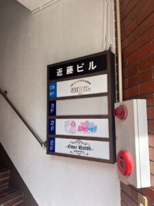 オーナー様からの依頼で、店舗入口の隣に可愛らしい吊り看板を取り付けしました。