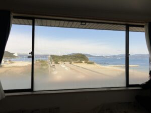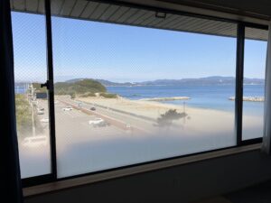 ホテル海月様のガラス面にグラデーションシートを貼らせて頂きました。