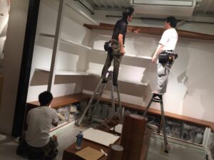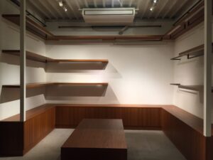 アパレルショップの商品棚をダイノックシートにてラッピング。