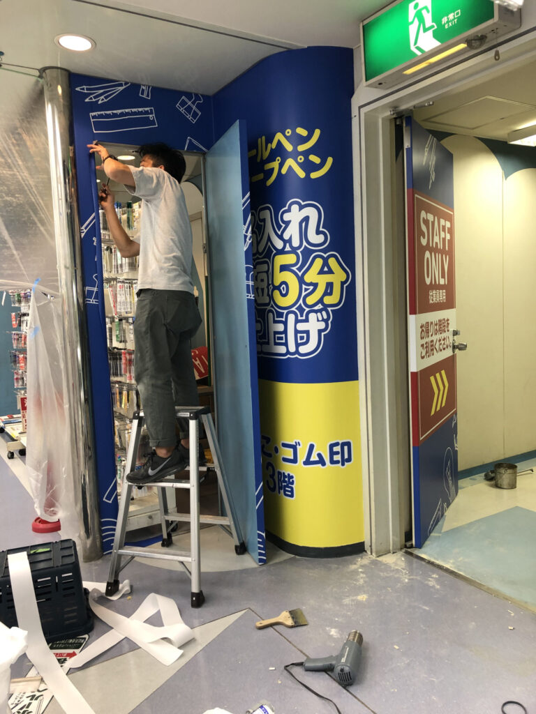 壁面シート貼り クライアント名 イケマン様 施工日 2020年6月 施工事例紹介 イケマン様の店舗内の壁面にシート貼りをさせて頂きました。 デザインにも拘って、スタッフルームや印鑑作成時間がすぐわかるようなデザインで仕上げました。 ありがとうございました!